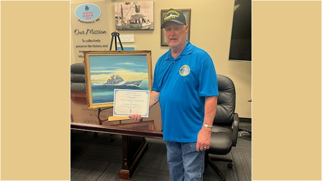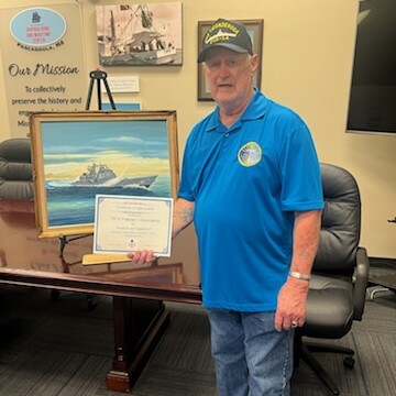Mr. Olen “Andy” Anderson, President, USS Ticonderoga Veterans Association visits us from Arkansas! Andy drove down to Pascagoula from Arkansas to check out our TICO CG-47 displays.